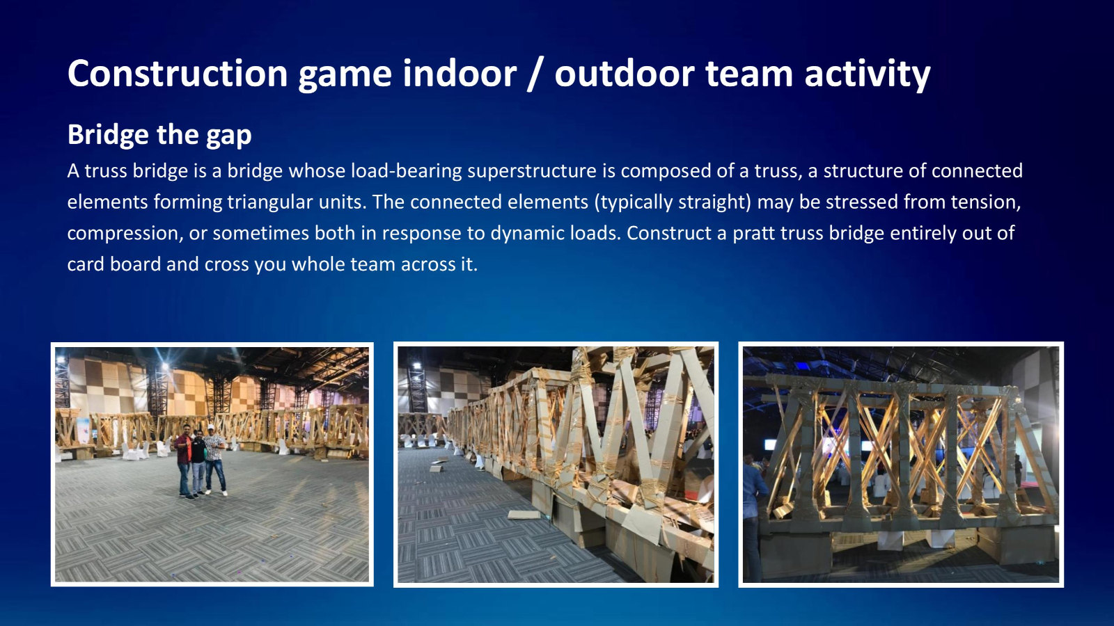 Build a bridge 80 feet along which symbolises team coming together