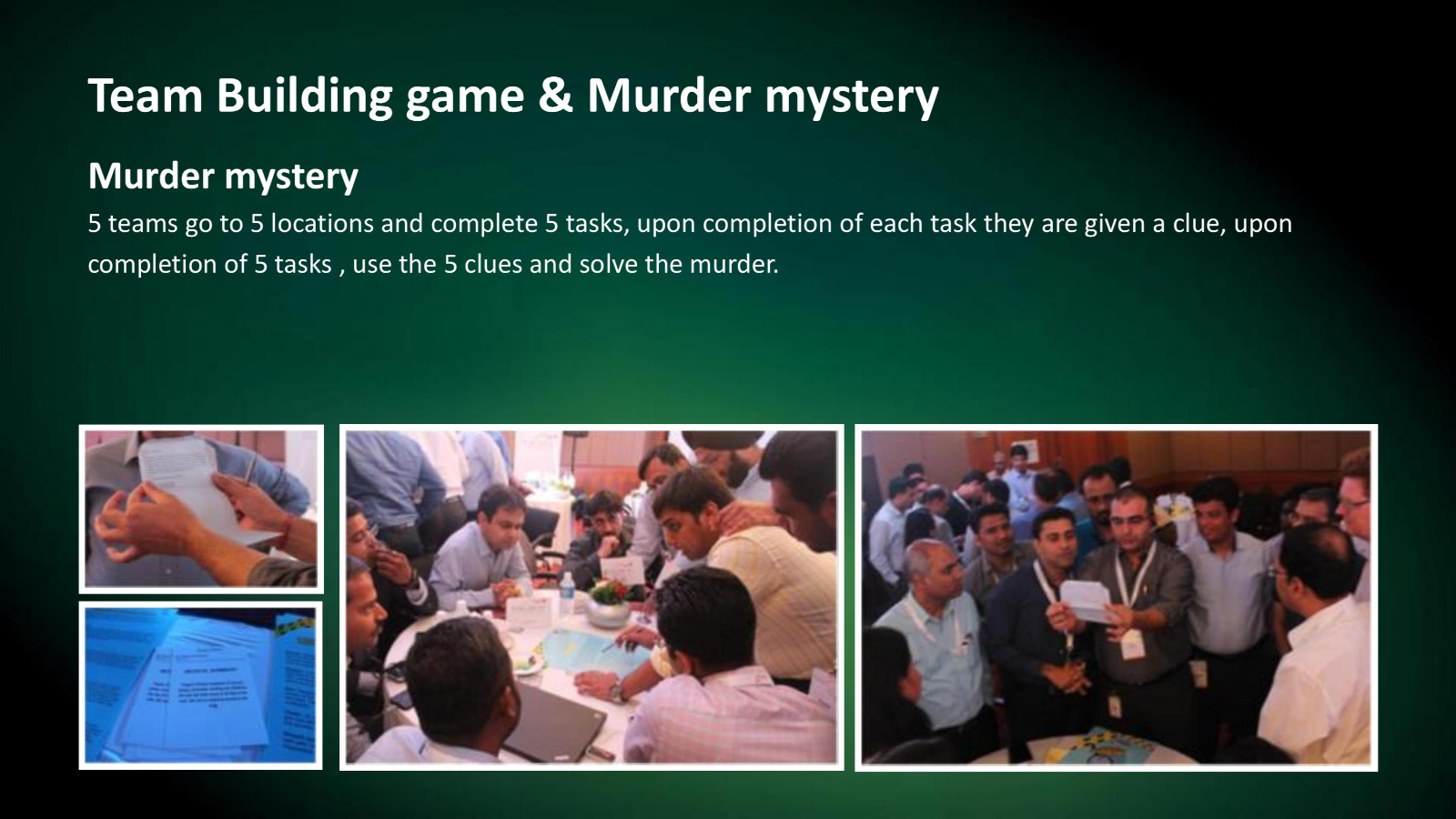 Solve exciting murder mysteries using clues that are got when you successfully solve team tasks.